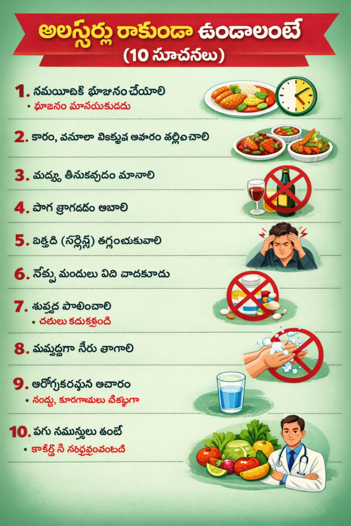 చివరగా (Finally)…అల్సర్లు రాకుండా ఉండాలంటే …..